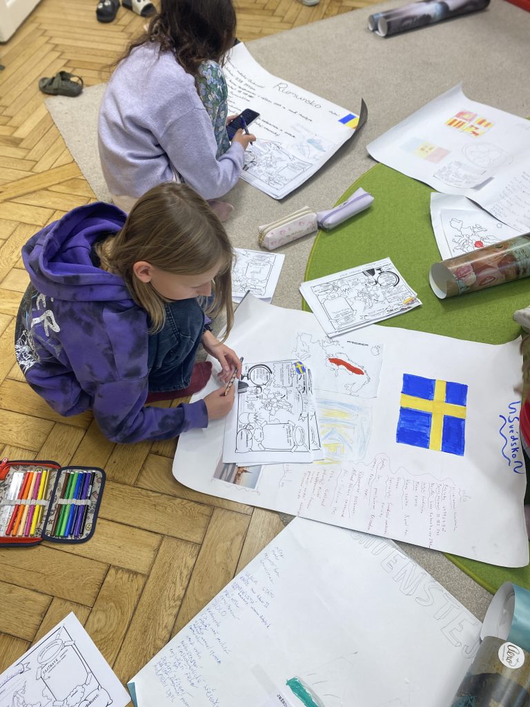 Starší děti pokračovaly v projektu Evropa – objevovaly nové státy, poslouchaly hymny, sdílely zajímavosti a tvořily pracovní listy. V literární části se inspirovaly knihou Prevítovi, učily se vyjadřovat myšlenky i pocity a rozvíjely porozumění textu. Nechyběly ani podzimní výtvarné projekty – koláže, věnce, tematické práce i hudebně-pohybové činnosti. Říjen uzavřely halloweenské dny, které spojily tvořivost, humor a radost z toho, že učení může být hrou.