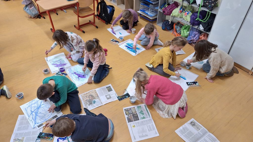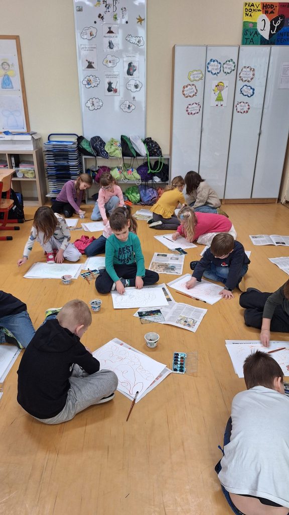 V druhé hodině pracovaly se speciálními ladičkami, které přispívají k harmonizaci těla i duše. Součástí programu bylo také propojení vnímání hudby s výtvarným vyjádřením, kdy děti své pocity při poslechu hudby přenesly do svých obrazů. Všichni jsme si obě hodiny moc užili.