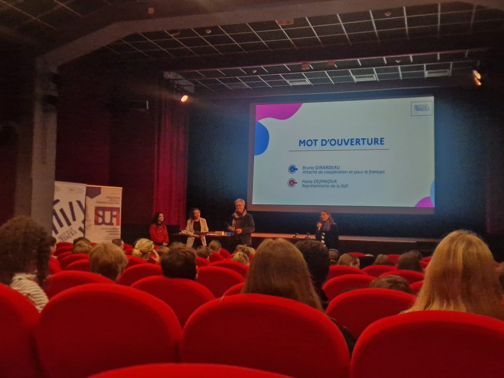 “Návštěva Francouzského institutu byla velice záživná. Viděli jsme spoustu krásných a zábavných videí. Bylo tam 7 škol a zhruba 150 lidí a 17 soutěžních videí. Z naší soutěživé školy tam byly celkem tři třídy: 7. A/7. B, 8. A/8. B, 9. A/9. B. Dostali jsme krásně designovaný pracovní list, který byl na hlasování pro stupeň vítězů. Po skončení videí jsme hráli zábavnou hru kahoot. Po programu jsme dostali občerstvení jako třeba: croissant, džus, kafe atd. …”