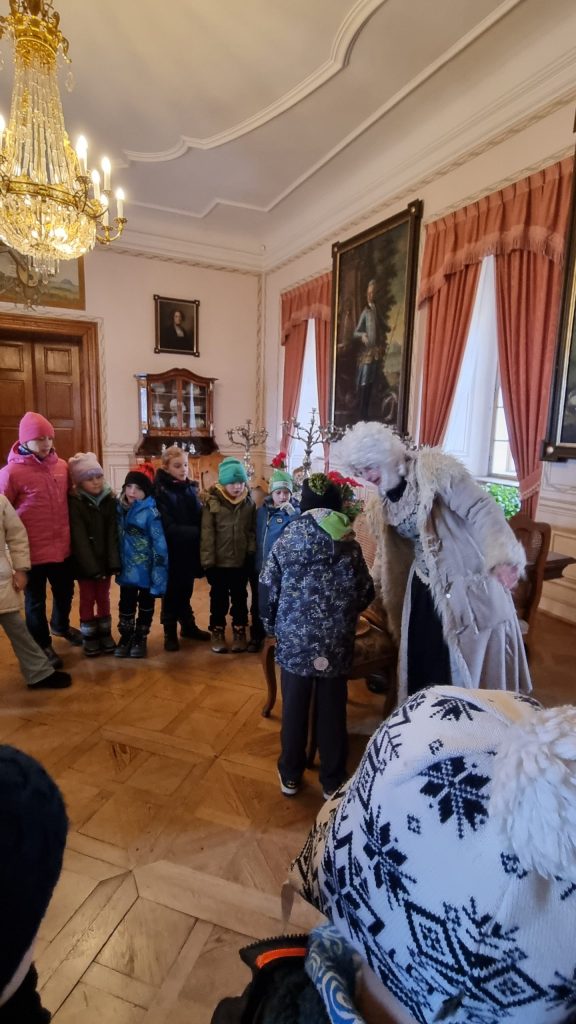 V pátek 12.12. se vydala přípravná třída a třetí třídy na předvánoční výlet na zámek v Mníšku pod Brdy. Slavnostně vyzdobeným zámkem nás provedla paní kněžna. V každé místnosti se děti seznámily i si zkusily různé zvyky a tradice. Například pouštění lodiček, házení střevícem, věštění budoucnosti. Z dílničky si každý odnesl vlastnoručně vyzdobeného anděla. Do Prahy jsme se vrátili vánočně naladěni.